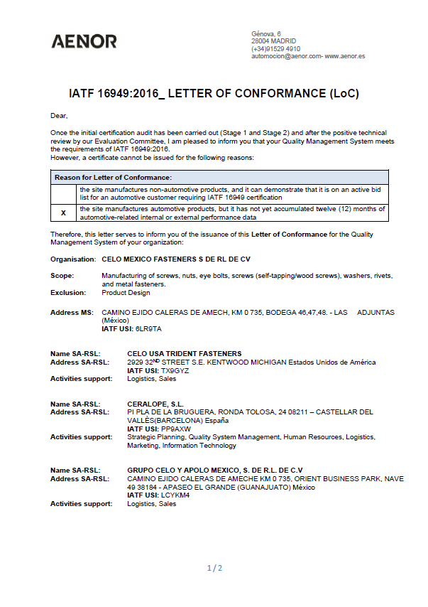 西螺 (苏州) 精密紧固件有限公司质量认证