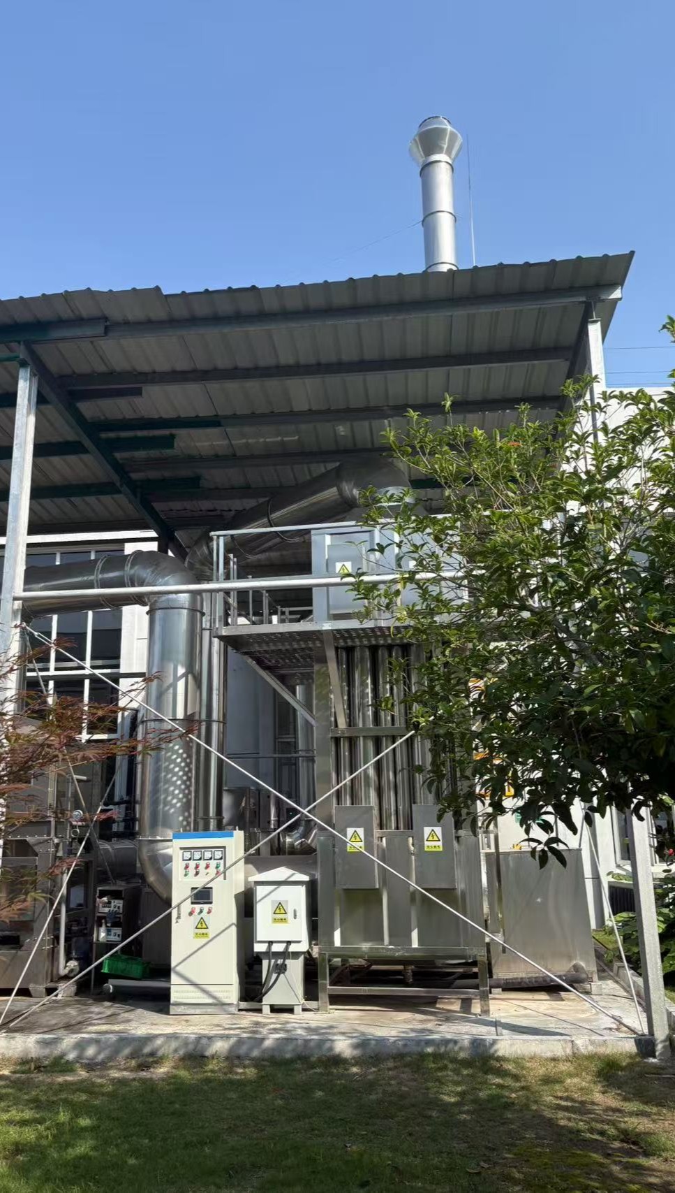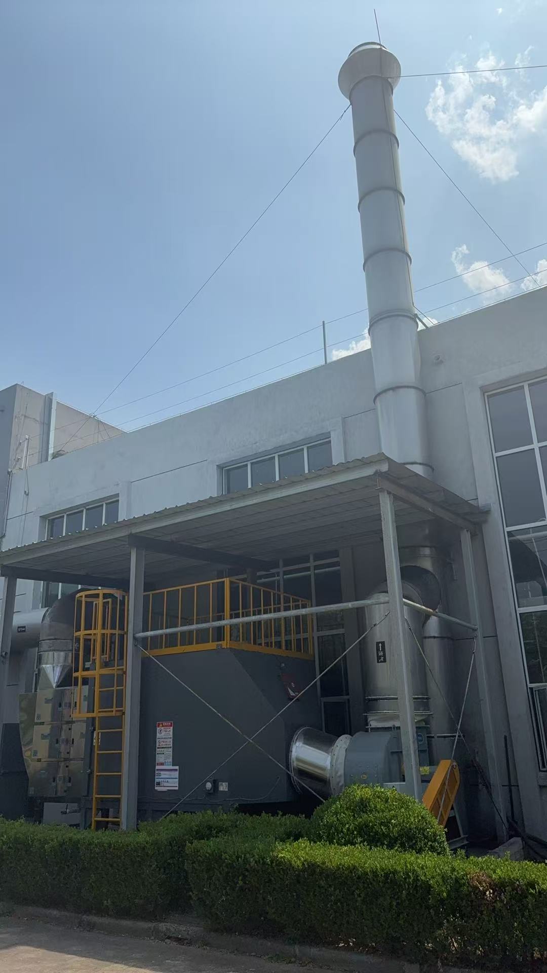 热处理末端处理整体设施已更换。我们重新设计活性炭箱并重新计算活性炭更换频率。新系统将废气经由集气罩收集, 经过动态喷淋塔及静电吸附, 再经由变频离心风机, 由15米排烟囱排放。